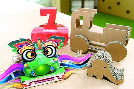 「悠紙生活館」從瓦楞紙的應用中發現許多樂趣,將瓦楞紙的餘料變化成有趣的紙玩具、紙家具,