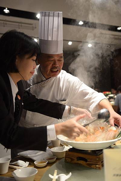 (盧偉強大廚介紹蛤蠣蘑菇啤酒紅蟳,現場香味飄散四溢)