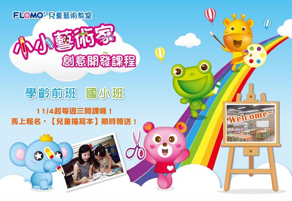 FLOMO觀光工廠新開設【小小藝術家 創意開發課】針對學齡前及國小不同年齡層的孩子開設不同課程,全程使用富樂夢無毒美術材,陪伴孩子健康學習。