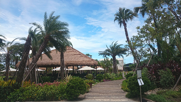 另一位嬌客—蔓玫,則是所有玫瑰園的主角,沒有蔓性玫瑰的花園就如同沒有生命的假花,總是缺少一份吸引人之魅力,在雅聞峇里海岸蔓玫有著更特別的出場方式,蔓玫與棕櫚樹、中東海棗搭配,近百棵的蔓玫與棕櫚共舞,舞出嶄新的曲目。