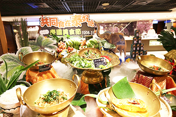 泰式料理以熱辣、辛辣而聞名,每種菜餚包含五種基本口味完美平衡:熱(辣)、酸、甜、鹹和苦,泰國食品也因使用新鮮的香草、香料以及魚醬而聞名。這次主打的泰北系料理中帶有淡淡的辣味及香料,大多沒有以糖入菜,有別以往在餐廳吃到的泰國料理口味。【共同食在泰好吃!泰國美食節】期間限定料理包含熱菜、冷盤、湯品、甜點每天輪流供應,包含著名「酥炸黃金鮮蝦雞肉泥」、「泰式酸辣鮮蝦湯」、「椰香綠咖哩雞」、「打拋豬」、「摩摩喳喳」等共50多道正宗泰國料理,讓您享用時倍感驚艷,共同市場歐亞自助餐廳也在將10月期間變身為泰味十足的用餐空間,讓您感受濃濃泰國風情。