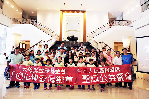 臺南首家五星級觀光酒店大億麗緻創立16年,自開幕以來與「財團法人吳金茂紀念文教基金會」每年積極投入社會公益,十餘年來長期贊助慈善事業,不遺餘力。此次為關懷南投縣偏鄉學童,於10月19日邀約南投縣「郡坑國小」學童至大億麗緻酒店「歐亞共同市場自助餐廳」享用豐盛自助式午餐,與學童提早過聖誕。