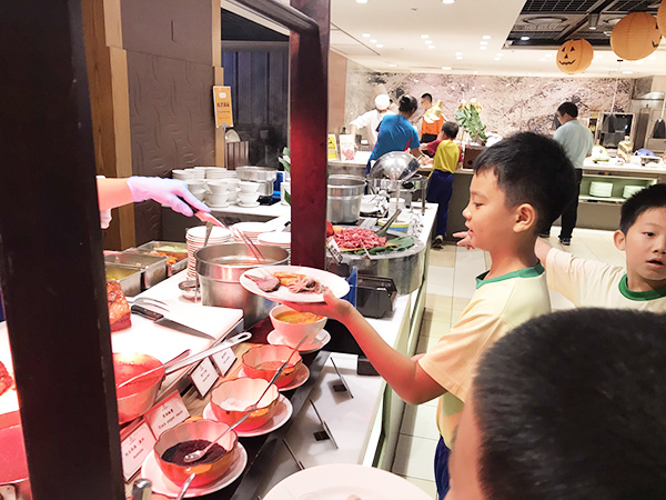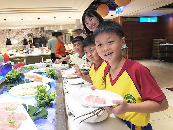 餐檯上琳瑯滿目的美食佳餚讓學童盡情品嚐,盼師生們留下歡樂溫馨的美好時刻
