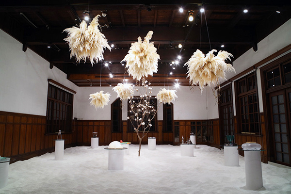 十二月份的府城街頭,到處瀰漫耶誕及跨年氣氛,雖然皚皚白雪未曾降臨府城,但今年文創PLUS規畫系列生活提案特展「白色府城:甜蜜冬日」,就在愛國婦人會館一樓展廳呈現銀色耶誕美景。但原先的雪景計畫使用七股的鹽做場舖,因為擔心民眾進入踩踏會產生鹽漬,因此改用白色環保材質充當雪景。