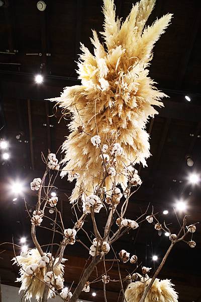 白色耶誕樹由「花裡」設計師陳昊利用二百多支大蘆葦與將軍棉花,搭配盧貝松大松果和南洋野果,用裝置藝術的概念,精心打造出夢幻值破表的白色雪景,再利用現代花藝,妝點出「歲寒不凋」的冬日色調。民眾置身其中,彷彿踏入一個晶瑩剔透的童話世界,整個愛國婦人會館就像一個優雅的大禮物,處處充滿甜美驚喜。
