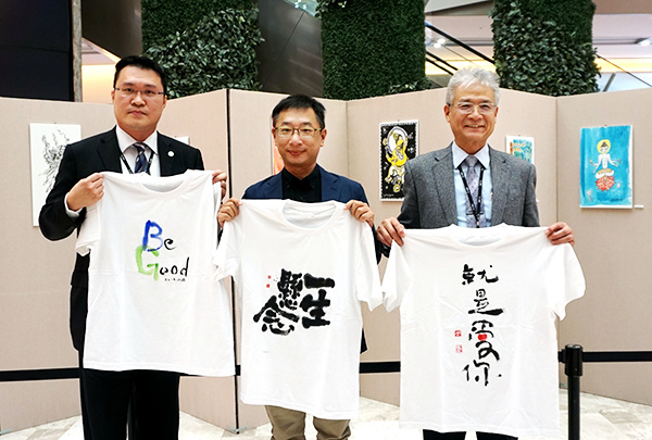 20日下午於南紡購物中心一樓時尚廣場舉辦「蛙趣 · 佛 Ever, Watch Forever 2017周家旭書畫公益展」記者會,由書畫家周家旭分享個人創作理念,並呼籲各界關懷弱勢嬰兒,南紡購物中心總經理廖孟省、營業事業群協理楊鈵彥應邀出席,周家旭將「就是愛你」的創作T-Shirt致贈給廖孟省,感謝購物中心無償租借場地,讓公益水墨展能順利舉辦。