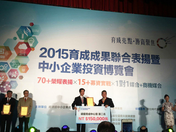 經濟部為表揚「104年度補(捐)助之中小企業創新育成中心」培育中小企業之表現,進一步促進中小企業創新育成中心多元發展,聚焦建立核心專長與特色服務,激勵育成中心提升輔導服務品質及能量,特別設計青年創業、婦女創業、創新應用、跨國育成、前育成、社企育成、區域聯盟及最佳人氣、最近進步獎等九大獎項經公開遴選方式,擇優頒獎表揚。