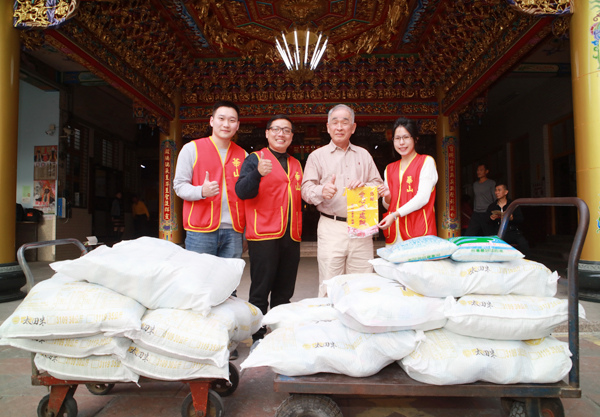 宮捐贈的5公斤白米80包共400公斤白米,由北區站長孫逸安等人代表接受。孫逸安表示,華山社福慈善事