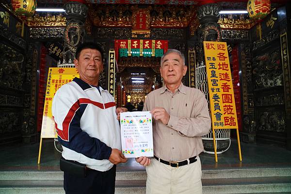 公斤、財團法人華山社會福利慈善事業基金會白米400公斤,兩單位回贈感謝狀並對對玉皇宮多年來在