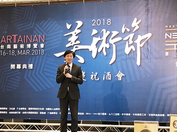 為慶祝「2018美術節」,市府特別結合「2018臺南新藝獎」頒獎典禮及「2018臺南藝術博覽會」開幕式,於3月15日由市長親臨主持,向所有藝術創作者致上最深敬意。包括臺南市美術館館長潘襎、本市各大美術協會、學會及畫會人士、參與店家代表、新藝獎得主及藝術家等近300位貴賓應邀出席,老中青三代齊聚,現場冠蓋雲集、場面溫馨。